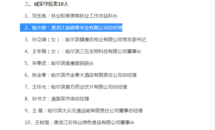 2、楊小波:黑龍江省碩泰米業有限公司總經理